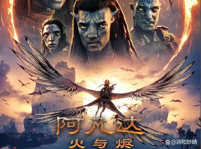 当然,视觉上绝对还是顶级的。 故事从海洋拓展到了火山地带,灰烬族的老家到处都是岩浆和灰烬。 制作团队用纳米级的渲染技术,连战士皮肤上岩浆流动的效果,都是用流体力学算法一帧一帧算出来的。 还新加了一个叫“风之商旅”或者“风行商队”的空中部落,他们骑着叫“风暴鳐”的四翼生物,或者住在巨大的“若涛水母”飞艇上,在天空贸易。 卡梅隆用“山”、“海”、“风”来串联整个系列的世界观,这次“风”代表的是一种联结和流动的力量。