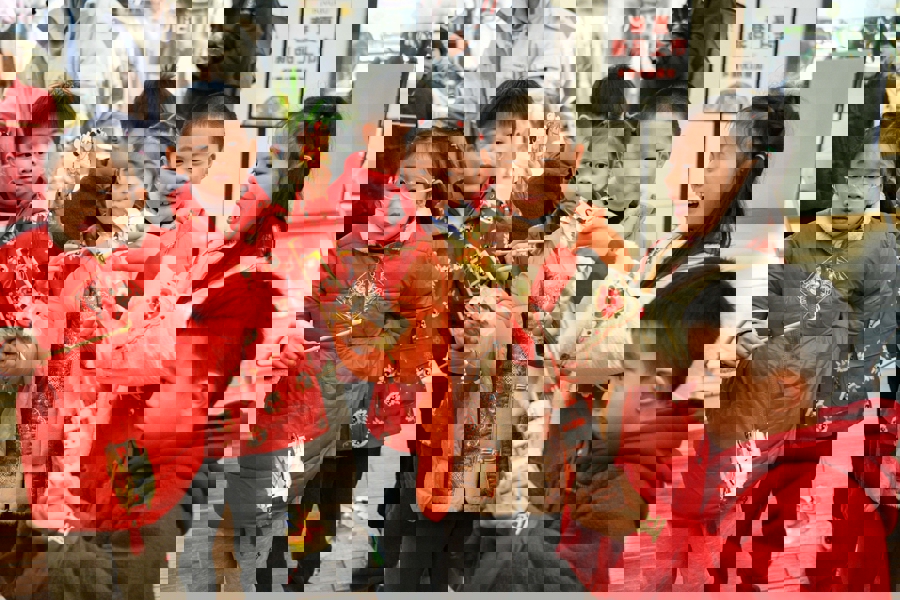 如果说中国今年超长的春节假期是一场漫长的狂欢,元宵无疑是落幕前的高潮。“正月十五闹元宵”,一个“闹”字道出了元宵节的欢腾。作为拥有非遗项目最多的上海街镇之一,每年的正月十五前后,三林镇都会开展民俗展示展演活动。这里的群众性舞龙尤为兴盛,自古便有“东西两庙碰头会,双龙共舞风头足”的盛况,被列入国家级非物质文化遗产名录,三林镇也被评为“中国龙狮运动名镇”。