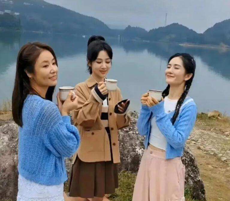 到了林心如,这身蓝色毛衣配白色镂空长裙,是与两位妹妹很搭,但是不适合她自己。