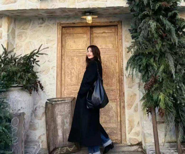 等了一周的时间,高圆圆的几张穿长款大衣,配牛仔裤的照片才被晒出。
