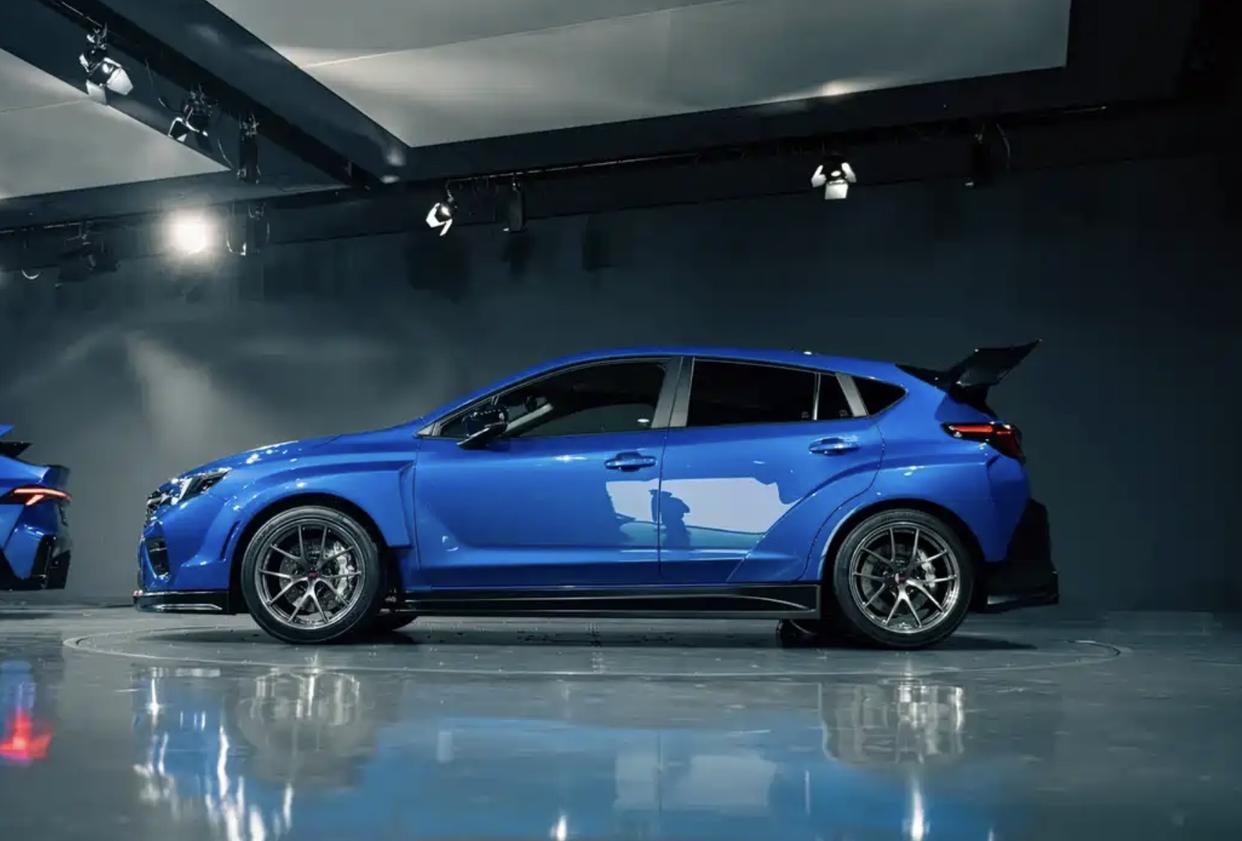 车身采用了经典的两厢车身设计,换上了经典的蓝色车漆涂装易信盈,以及红色细节点缀,同时提供粉色的Subaru Tecnica International斯巴鲁标识。黑色的车窗饰条与隐私玻璃巧妙结合在一起。黑色的轮眉、侧裙与碳纤维材质的前后唇融为一体,凸显出它宽体的特质。18英寸的Y字形交错的锻造的金色轮圈搭配着巨大的Brembo卡钳和镂空式通风刹车盘,与之匹配了245/40 R18运动轮胎,再加上碳纤维后视镜和车窗边缘的黑色装饰条,营造出低趴的姿态。尺寸方面,车身的长宽高441517401440mm,轴距2525mm,车内采用5座布局,还有着401L行李厢容积,实用性不错。